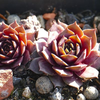 Eine schöne Sorte mit großen Rosetten aus Großbritannien (Züchterin: Sue Thomas). Die Pflanzen spielen mit allen erdenklichen Purpur-, Lila- und Violetttönen, im Sommer gesellen sich kühle Blau- und Silbertöne hinzu. Ich mag sie sehr.