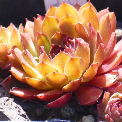 Die Rosetten dieser Sorte wachsen zu einer Größe von 6-7 cm heran und leuchten im Frühjahr in einer granatroten Farbe. Im Laufe des Sommers hellen die Farben auf und es gesellen sich ockerfarbene Töne hinzu. Die gut sprossende Pflanze wurde von Martin Haberer zu Ehren des Schweizer Gärtners Max Frei benannt.