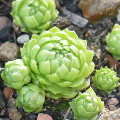 - Sempervivum globiferum ssp. arenarium (Zwerg- oder Sand-Fransenhauswurz)